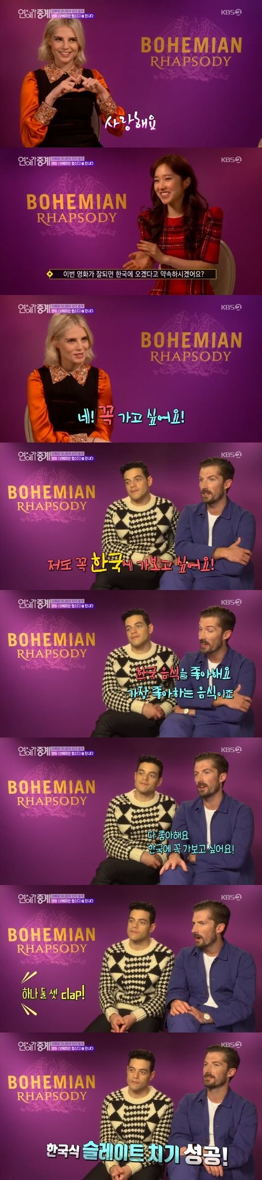 26일 오후 방송된 KBS2 '연예가중계'에서는 영화 '보헤미안 랩소디' 주인공들을 만나는 모습이 공개됐다. 이 영화는 세계적인 그룹 퀸의 이야기를 다루고 있다.