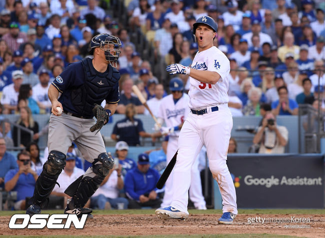선제득점은 다저스에서 나왔다. 3회말 2사에서 1번 타자 작 피더슨이 릭 포셀로의 초구 81.9마일 체인지업을 받아쳐 그대로 담장을 넘겼다. 피더슨의 한 방으로 다저스가 1-0으로 앞서며 균형을 깼다. / jasonseo34@osen.co.kr