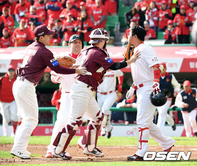 이에 양 팀 선수들이 우르르 그라운드로 몰려나와 대치했다. 벤치 클리어링. 다행히 양 팀 선수들이 최정과 브리검을 적극적으로 말리며 물리적 충돌이나 불상사 없이 마무리됐지만 양 팀 사이에 팽팽한 긴장감이 흘렀다.