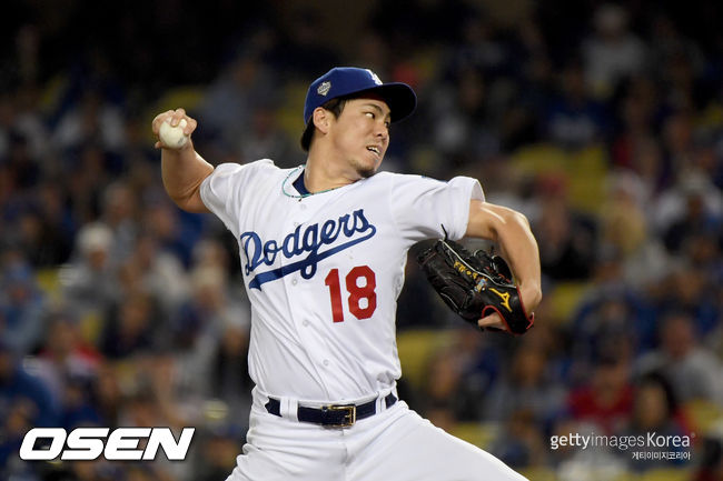 마에다는 27일(이하 한국시간) 미국 캘리포니아주 로스앤젤레스의 다저스타디움에서 열린 2018 메이저리그 보스턴 레드삭스와 3차전에 불펜 투수로 등판했다.