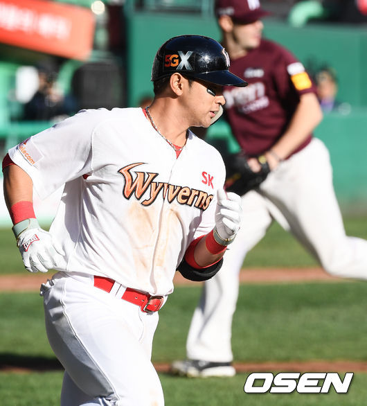 1-1로 맞선 4회말. SK가 화끈한 타격을 뽐냈다. 선두타자 이재원의 안타 뒤 김동엽이 볼넷을 골라냈다. 이어 김성현이 희생번트로 1사 2,3루 득점 발판을 마련했다.