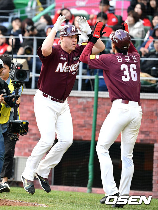 여기가 끝이 아니었다. 넥센은 7회초 공격에서 홈런 2개로 단숨에 동점을 만들었다. 무사 1루에서 송성문이 연타석 우월투런포를 날렸다. 이어 상대실책과 안타로 만든 무사 1,2루에서 샌즈가 좌월 스리런포를 가동해 승부의 균형을 맞추었다.