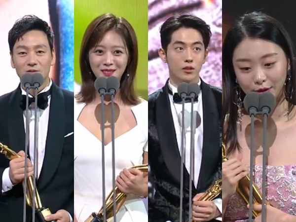 드라마 부문 남녀신인상은 tvN ‘슬기로운 감빵생활’의 박해수와 MBC ‘이별이 떠났다’의 조보아에게 돌아갔다. 박해수는 “예상을 못해서 소감을 준비 못했다. 너무 감사하다. 제가 캐스팅도 기적적으로 됐고 이 자리에 서있는 것도 기적인 것 같다”는 소감을 전했고 조보아는 “이렇게 기라성 같은 선배님들과 같은 자리에 있는 것만으로도 영광이었는데 이 자리에 오르니 더 떨린다. 끝까지 고민하고 최선을 다 하는 배우가 되겠다”고 밝혔다.