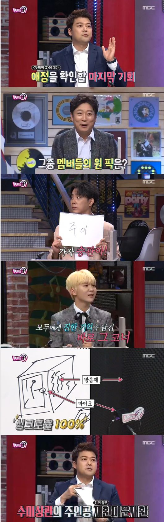 본격적으로 문제를 시작했다. 종영의 분위기를 맞춰, 뜻밖의Q에 관한 문제가 출제됐다. 멤버들은 "프로그램에 대해 애정을 드러내자"며 적극적으로 모두 문제에 귀 기울였다.