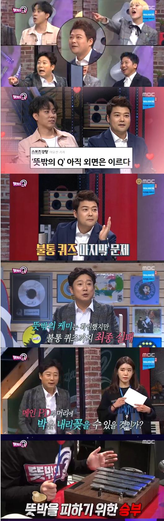 계속해서 '뜻박' 전쟁이 시작됐다. 모두 박을 피하기 위해 열을 올렸다. 멤버들은 "이게 바로 완전체임을 보여주자"면서 물 오른 퀴즈 감각을 보였다. 제작진을 이기기 위한 사투가 계속됐고, 정답 행진만 이어갔다.