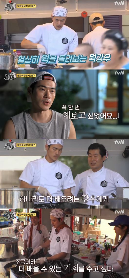 그 가운데 김강우는 처음으로 웍을 잡고 요리를 했다. 덮밥 위에 올라가는 채소 볶음을 하는 정도였지만, 김강우에겐 감격스러운 순간이 아닐 수 없었다.