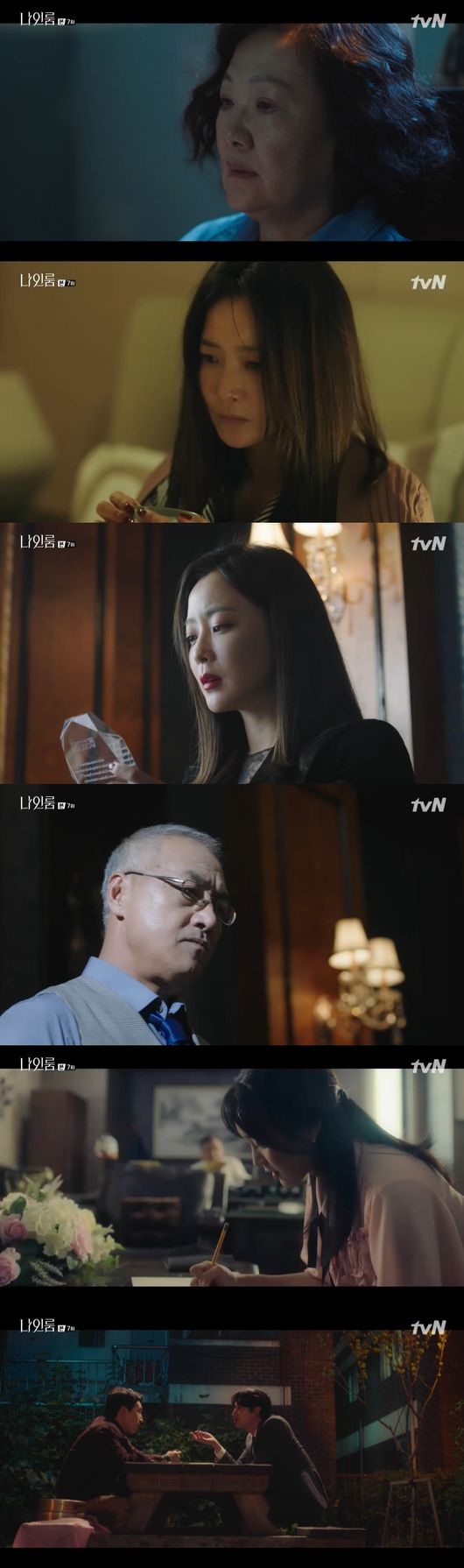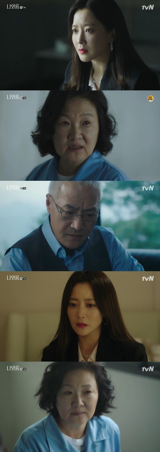 지난 27일 방송된 tvN ‘나인룸’에서는 기산(이경영 분)에 대한 결정적인 기억을 떠올리는 해이(김희선 분)의 몸에 들어가 있는 화사(김해숙 분)의 모습이 그려졌다.