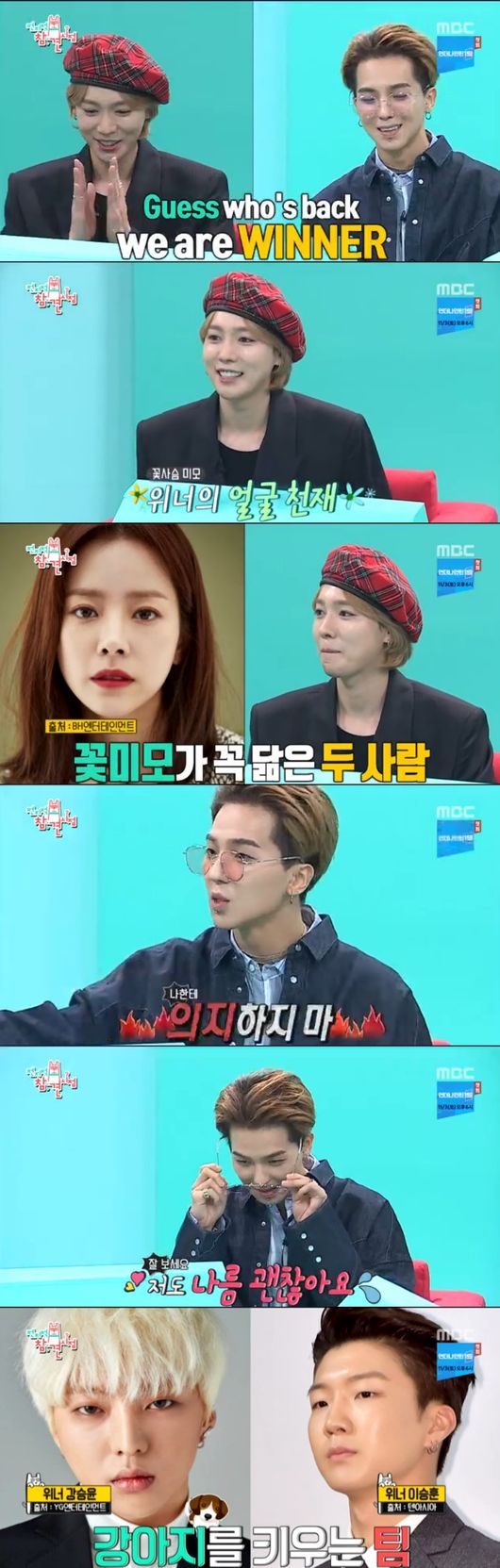 이날 위너 송민호와 김진우가 처음 출연했다. 민호 진우를 처음 본 MC들은 "너무 예쁘게 생겼다"몀 환호했다. 이어 왜 두 사람이 함께 출연했는지 묻자, 민호는 "위너가 두명 나눠서 지낸다. 우리는 고양이 키우는팀"이라면서 승윤과 승훈은 강아지팀이라고 해 웃음을 안겼다.