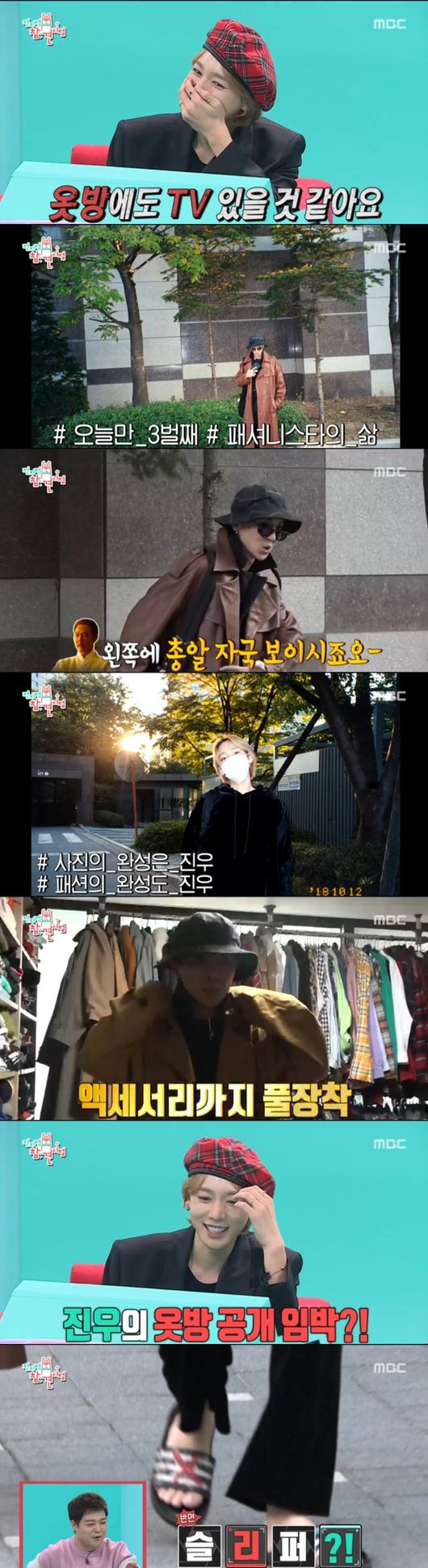 한창 곡 작업을 마친 민호는 다시 집에 도착, 매니저가 스케줄 일정을 전하자 옷을 갈아입었다. 하지만 진우는 그대로였다. 느긋하게 고양이와 놀고 있었다. 옷 고르느라 바쁜 민호에게만 매니저는 재촉했고, 진우는 입은 옷을 그대로 입고 빠르게 외출 준비를 끝냈다. 매니저는 "가자고 하며 진우는 바로 나가는 스타일"이라면서 "민호는 준비시간이 길어, 원치않는 재촉을 하게 됐다"고 말해 웃음을 안겼다. 매니저는 액세사리까지 풀장착해 패션을 완성했고, 진우는 마스크 하나만 챙겨나갔다. 내추럴함을 넘어 슬리퍼까지 신고나온 진우의 모습이 웃음을 안겼다.
