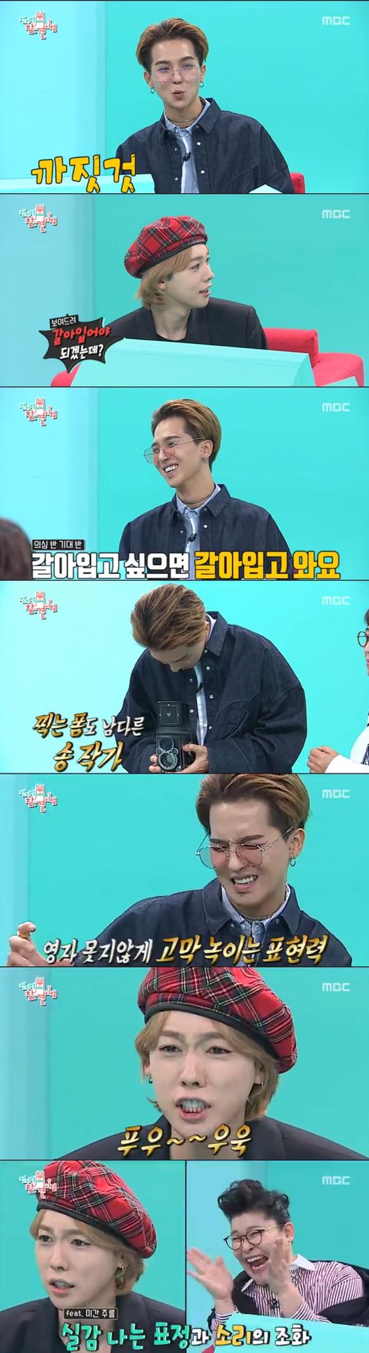 멤버들은 분주하게 메이크업을 마쳤다. 그리곤 공연까지 완벽하게 해냈다. 민호는 사진찍기에 바빴다. 실제로 카메라 30개는 있다고. 멤버들은 사진구경하느라 바빴다. 민호는 "오늘도 하나 갖고 왔다"면서 신상 카메라를 꺼냈다. 한눈에 봐도 심상치 않은 수동 카메라였다. MC들은 "민호에게 찍히고 싶다"면서 그런 취미를 참여했다. 민호의 필름 카메라 느낌을 듣자 진우는 "이해가 안 간다, 카메라 앱도 있다"며 역시 극과 극 모습을 보였다. 드라마 보는 맛에 대해 진우는 "사골 푸욱 끓인 맛"이라 말해 웃음을 안겼다. MC들은 위너의 취미와 일상을 보며 "생각보다 조용하다"면서 놀라워했다.