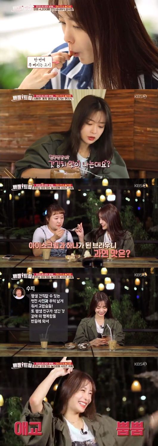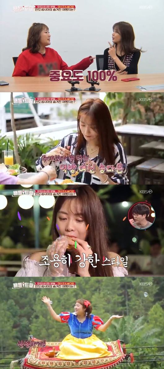 송다은은 27일 방송된 KBS 2TV 원조 여행 설계 예능 '배틀트립'에서 이수지와 함께한 인도네시아 반둥 여행기를 공개했다.