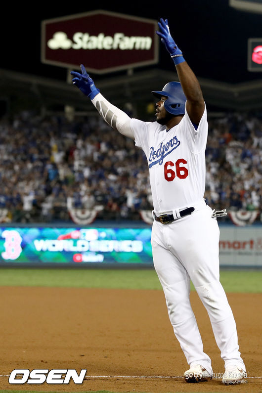 2사 1,3루에서 야시엘 푸이그가 나섰다. 푸이그의 스리런 홈런으로 4-0으로 앞선 다저스가 승부에 유리한 고지를 점령했다. / jasonseo34@osen.co.kr