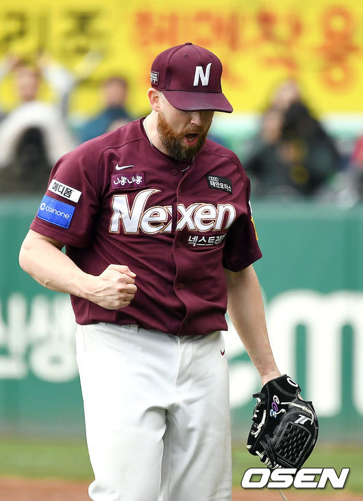 이날 경기를 앞두고 장정석 감독이 "최대한 길게 던지도록 할 것"이라고 바람을 전했다. 19일 한화와의 준플레이오프 1차전에서 5⅓이닝 1실점(비자책) 호투를 펼치며 기대를 모았던 해커였지만, 이날 6회 고비를 넘지 못하고 고개를 숙였다.
