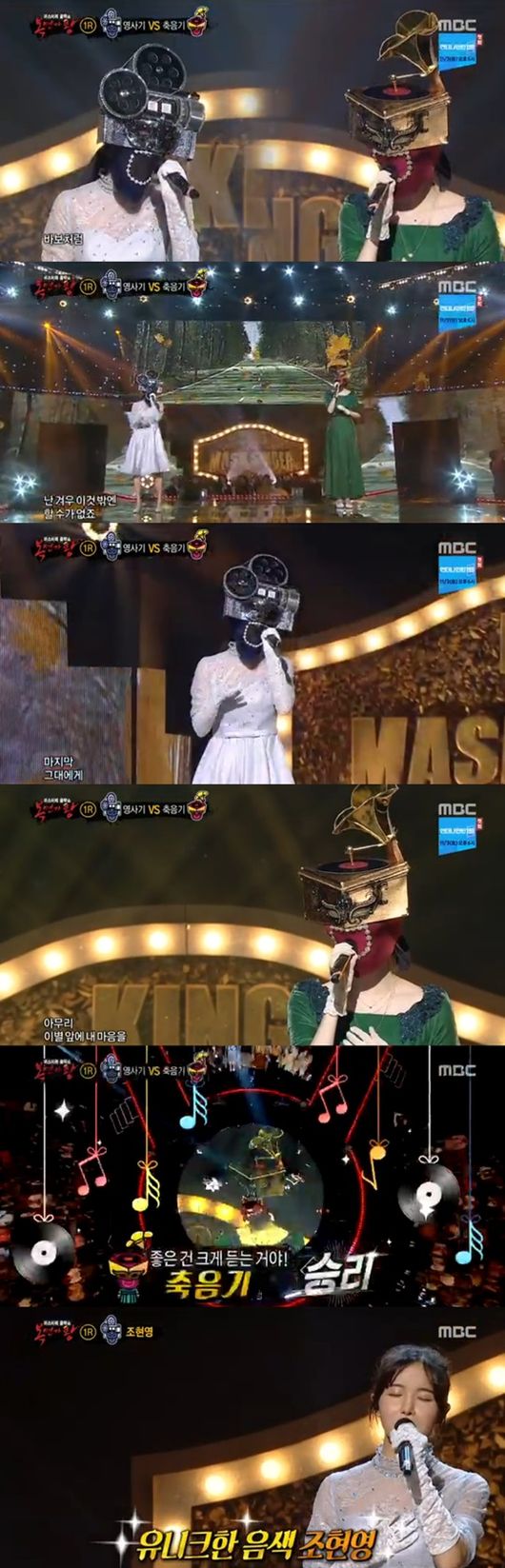 1라운드 첫 무대의 승자는 축음기였다. 아쉽게 탈락한 영사기는 거미의 '아니'를 열창하며 가면을 벗었다. 영사기의 정체는 바로 레인보우의 조현영이었다. / yjh0304@osen.co.kr
