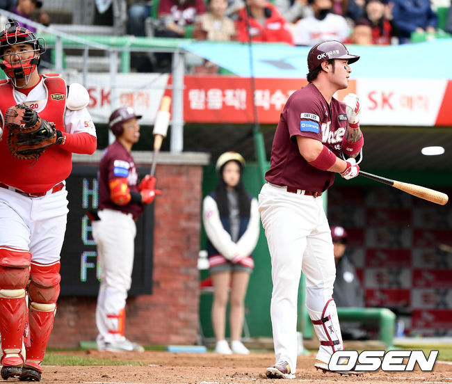 1-2로 역전 당한 6회에도 선두 제리 샌즈가 볼넷으로 출루했지만 박병호가 연결하지 못했다. 이번에는 운이 따르지 않았다. 좌완 김택형의 2구째 직구를 밀어 쳤지만 파울 라인 밖으로 벗어나는 깊은 타구가 되는 듯했다. 하지만 SK 우익수 한동민이 끝까지 따라가 나이스 캐치했다.