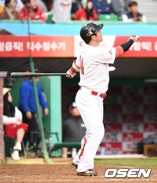 종전 기록은 전준호(당시 현대)가 기록한 16경기였다. 이번 시리즈 전까지 플레이오프 15경기 연속 출루를 기록했던 최정은 1·2차전 경기 결과를 통해 전준호의 기록을 뛰어넘었다. /skullboy@osen.co.kr