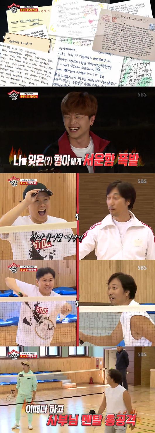 이어 멤버들은 이문세와 4대 1 배드민턴 대결을 벌였는데, 넷이서 한 팀을 이뤄 한 명을 상대했음에도 이문세의 실력에 져 패배했다. / purplish@osen.co.kr