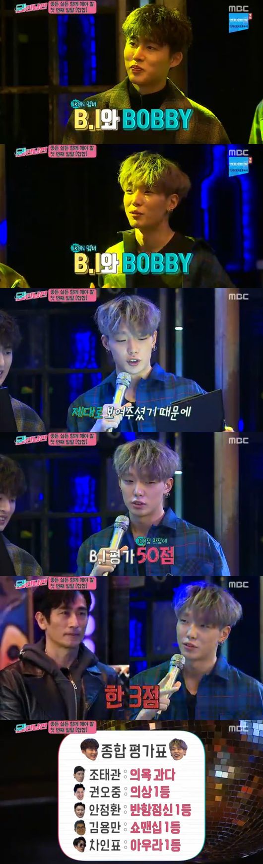 드디어 테스트가 끝난 후 비아이, 바비와 멤버들이 만나게 됐다. 두 사람은 "우리 둘다 몸치였다"면서 영상으로 독학해 최고의 위치까지 올라왔다고 했다. 충분히 가능성이 있다고 응원했다. 이어 각각 한 명씩 점수를 줬다. 권오중이 의상부터 리듬감까지 만점을 받았다. 마지막 차인표는 기대감이 잔뜩 찼다. 하지만 생각보다 낮은 점수였으나, 아우라 1등을 차지했다. 비아이와 바비는 "자신만의 사상과 세상이 있다"고 평가해 웃음을 안겼다.