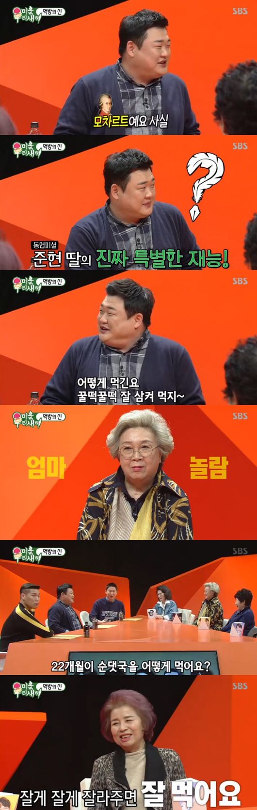 신동엽이 김준현 딸이 22개월차 임에도 순댓국을 먹는다고해 놀라움을 안겼다.