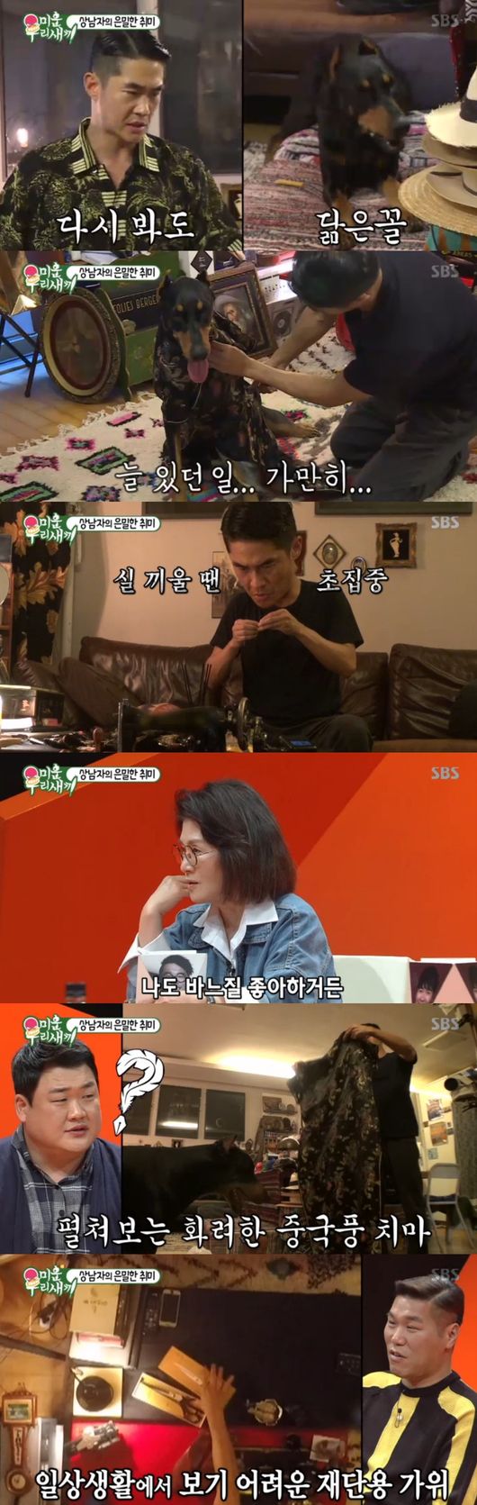 이어 한가득 쇼핑한 옷 보따리를 펼쳤다. 구제샵에서 건진 옷들을 펼쳐보며 변려견 옷을 만들기 위해 리폼을 시작했다. 가볍게 손가락으로 실을 매듭해 수준급 바느질 실력을 보였다.
