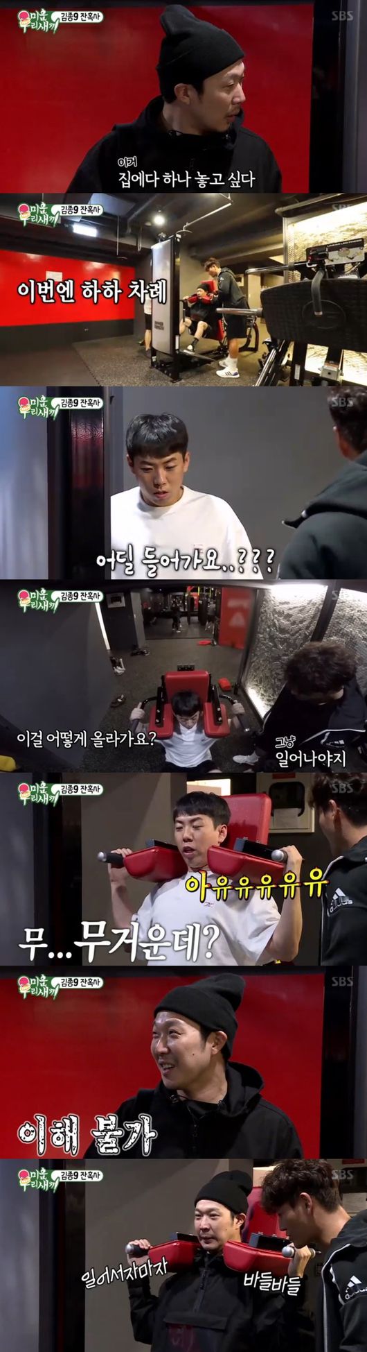 김종국은 먼저 운동을 시작, 이어 본격적으로 운동트레이닝을 시작했다. 양세찬과 하하는 다리가 풀린 듯 주저앉았으나, 김종국은 "느낌이 좋다"면서 코치를 열심히 했다. 이어 동생들이 힘들어했던 운동기구를 거뜬히 해냈고, 동생들은 기겁하며 놀라운 근육운동에 감탄했다. 알고보니 해외에 가면 헬스장부터 찾아간다고. 母는 "아휴, 안 좋아"라며 못마땅하게 바라봤다.