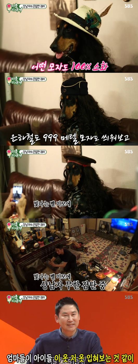 반려견에서도 모델포스가 풍겼다. 배정남은 가발까지 씌우며 또 다른 느낌을 연출해 모두 입을 다물지 못하게 했다. 배정남은 다양한 모자들까지 씌우며 마치 화보촬영을 연상케 했다. 어떤 모자도 100프로 소화하는 반려견을 보며 배정남은 "예쁘다"며 역시나 개바보 모습을 보였다. 특히 배정남은 두루마기 옷을 리폼하기 시작, 가을코트로 새롭게 변신시켰다. 母들은 "저 사람 진짜 재밌다, 우리 아들과는 참 다른 사람"이라면서 "못 보던 걸 보니 참 생소하다"며 시선 집중, 옷 리폼은 기본, 자신의 멋을 창조하는 배정남을 보며 감탄했다.