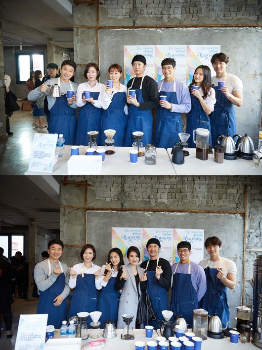 이날 일일바리스타로 배우 강덕중 송호수 이은형 지찬 유세례 윤주영 임혜진 등이 일찌감치 자리했다. 서로 처음 본 사이였음에도 불구하고 봉사를 하기 위해 모인 자리만큼 편안하고 화기애애한 분위기 속에 숙달된 솜씨로 커피를 만들고 행사에 참석한 고객들에게 커피를 직접 전달했다. 참석한 이들의 사진 요청에 일일이 인증사진을 찍으며 더욱 친밀하고 즐거운 시간을 보냈다.