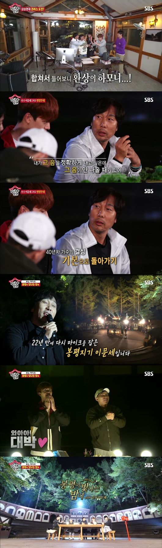 이날 이승기, 이상윤, 육성재, 양세형은 지난주에 이어 사부 이문세의 노래에 들어갈 코러스 녹음에 도전했다. 가장 먼저 이승기가 나섰다. 이문세의 디렉팅을 진지하게 듣던 이승기는 단번에 녹음에 성공했다. 두 번째는 맏형 이상윤이었다. 유독 음악, 노래에 약한 모습을 보였던 이상윤은 걱정과 달리 1차 시도 만에 녹음에 성공해 멤버들의 박수를 받았다. 이상윤에 이어 양세형이 화음 쌓기에 나섰다. 자신감을 보이던 양세형은 녹음에 들어가자 멘탈이 무너지는 모습으로 웃음을 자아냈고, 결국 육성재가 양세형의 음을, 양세형이 육성재의 음을 녹음해 무사히 하모니를 만들었다.