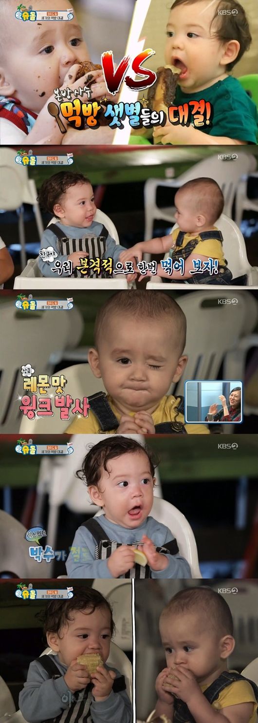 이날 방송에서 가장 높은 시청률을 기록한 장면은 꼬물이 벤틀리와 건후가 차지했다. 남다른 먹방 스킬로 시청자들의 마음을 사로잡은 벤틀리와 건후가 드디어 만났다. 따로 봐도 사랑스러운 아이들의 만남은 귀여움을 배가시키며 눈을 뗄 수 없게 만들었다.