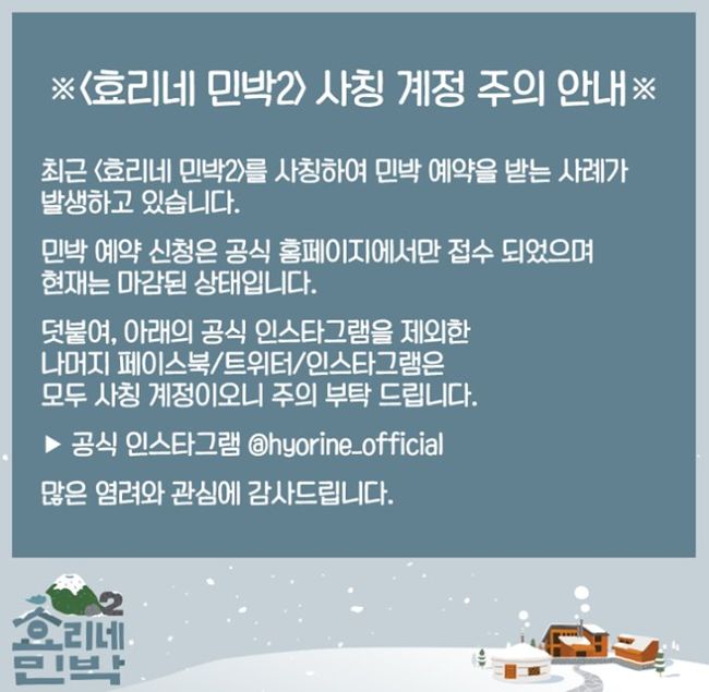 지난 2월 방송된 JTBC ‘효리네 민박2’도 사칭 SNS로 피해를 봤다. 제작진은 지난 3월 공식 SNS를 통해 “최근 '효리네 민박2'를 사칭하여 민박 예약을 받는 사례가 발생하고 있다. 민박 예약 신청은 현재 마감된 상태며 아래의 공식 인스타그램을 제외한 나머지 SNS 계정은 모두 사칭 계정이오니 주의 부탁드린다”고 밝혀 화제를 모았다. / yjh0304@osen.co.kr