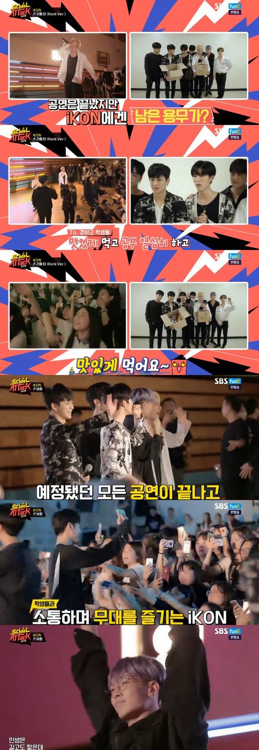 학생들은 앙코르를 외쳤고, 이 분위기를 몰아 아이콘은 앙코르까지 모두 완창, 뿐만 아니라 예정된 약속대로 아이스크림 선물공약까지 지키며 역대급 팬서비스로 '스쿨어택'했다.
