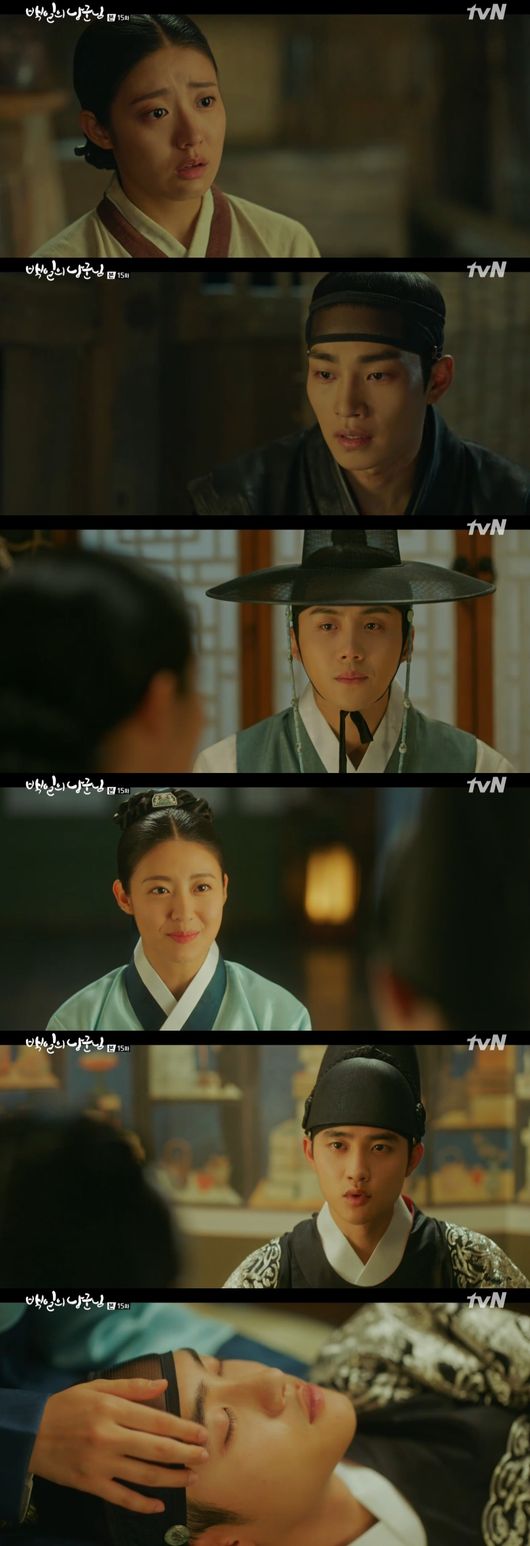 29일 전파를 탄 tvN 월화 드라마 '백일의 낭군님(연출 이종재/ 극본 노지설)' 15화에서 세자 이율(도경수 분)은 세자빈(한소희 분)에게 "내 오늘 밤도 그 여인이 그리워 잠을 못 자겠다. 야행? 못할 것도 없지요"라며 대놓고 홍심(남지현 분)의 얘기를 꺼냈다.