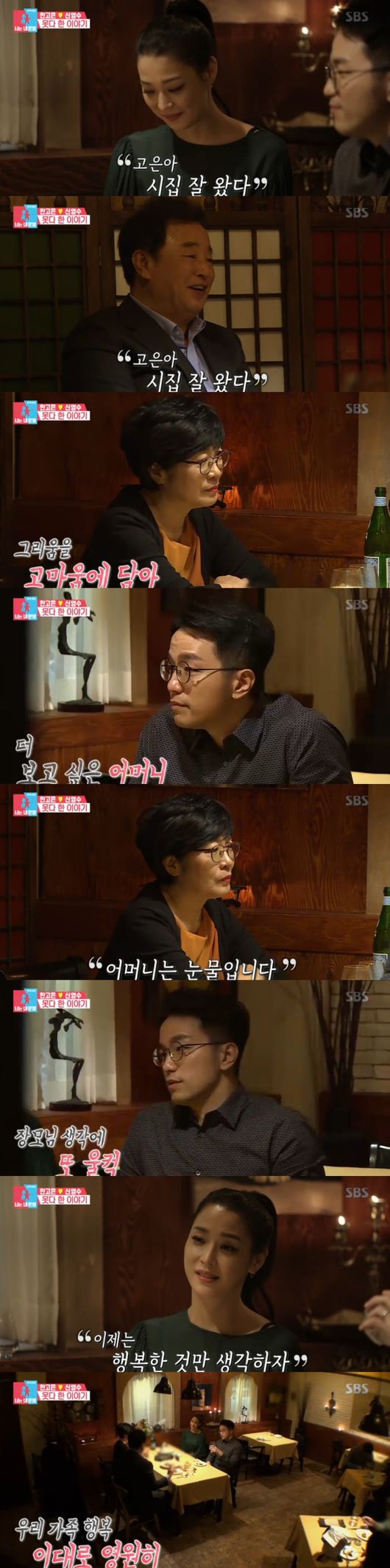 한고은은 "아직 어머니 얘기 꺼내기가 어렵다"면서 아직 아물지 않은 그리움을 전했다. 하지만 친정어머니 빈자리르 시어머니가 채워준다며 감사인사도 전했다. 시母는 "고은아 시집 잘 왔다"면서 "우리도 1등 며느리 봤다"며 고은의 마음을 위로했다. 시父역시 "이제 행복한 것만 생각하자"고 했고, 아픔도 함께 나누며 사랑과 행복이 흐르는 한고은, 신영수부부네 모습이 감동을 안겼다.