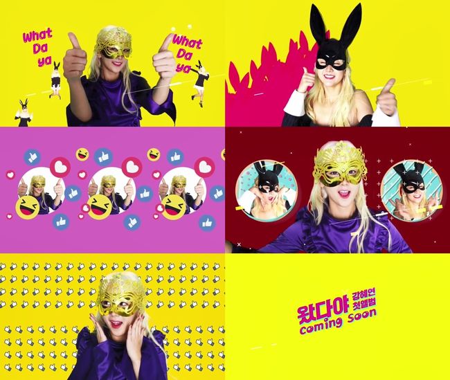 비비드한 컬러의 배경으로 한층 더 화사한 분위기를 자랑하는 이번 티저 영상 속에는 여러 모양의 가면을 쓰고 노래하는 강혜연의 모습이 담겨 있다.