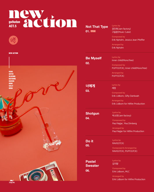 구구단은 30일 공식 SNS를 통해 세 번째 미니 앨범 ‘Act.5 New Action’ 트랙리스트를 공개하며 컴백 초읽기에 나섰다. 트랙리스트가 레드 컬러를 바탕으로 한 디자인 위에 입혀져 있어 새롭게 변신하는 구구단의 강렬한 변화를 예고하고 있다.