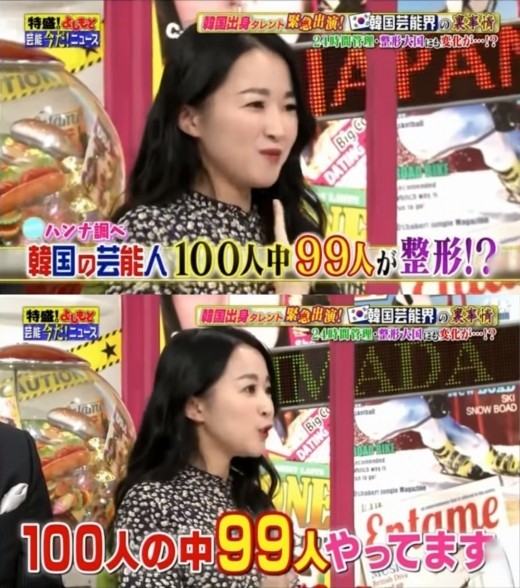 강한나는 27일 방송된 일본 요미우리 TV '토쿠모리! 요시모토'에 출연해 한국 연예계 성형에 대해 폭로했다.