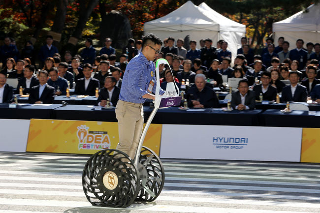 현대·기아자동차는 30일 현대·기아차 기술연구소(경기 화성시 남양읍)에서 연구원들이 직접 제작한 신개념 미래 이동수단과 차량 내 유틸리티를 겨뤄보는 ‘2018 R&D 아이디어 페스티벌’을 열었다. 자동차 개발을 담당하고 있는 연구원들이 기발한 아이디어를 내고, 시제품을 만들어 그 창의성과 참신성으로 경쟁하는 행사다. 연구원들은 맡은 업무 외 시간을 쪼개 지난 6개월 동안 자신과의 싸움을 치열하게 벌였다.