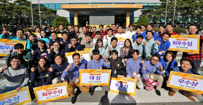 [사진] 위에서부터 대상을 수상한 ‘NAMU’, 최우수상을 수상한 ‘비도 오고 그래서’, 우수상을 수상한 ‘숲어카’. 맨 아래는 ‘2018 R&D 아이디어 페스티벌’ 수상자들의 단체 컷.