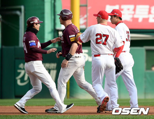 그러나 오점도 있었다. 두 차례의 벤치클리어링 때문이었다. 1차전에서는 3회 넥센 선발 제이크 브리검의 몸쪽 공에 최정이 머리를 맞을 뻔했다. 발끈한 최정이 배트를 집어 던지며 분위기가 험악해졌고, 결국 벤치클리어링이 일어났다.