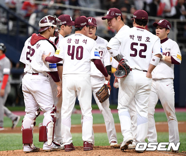 장정석 감독의 마운드 방문은 이번 포스트시즌에서 처음이 아니다. 한화와의 준플레이오프 2차전 7회말 2사 1,2루에서 안우진과 내야진을 다독이며 팀을 승리로 이끌었다. 그리고 준플레이오프 4차전 3-2 1점 차 리드 상황 무사 1루에서 마운드에 올라와 선수들을 차분하게 가라앉혔다. 그리고 장정석 감독이 마운드에 방문한 경기를 모두 승리했다.