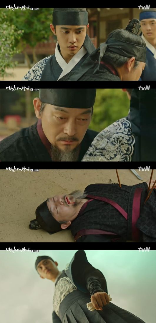 30일 방송된 tvN 월화드라마 '백일의 낭군님' 마지막회에서 율(도경수 분)은 김차언(조성하 분)에게 "윤이서(남지현 분) 그 계집이 제 손에 있다"는 협박을 받았다. 그는 "그 계집을 살리고 싶다면 저하의 일기도, 저하가 알게 되신 비밀도 영원히 묻어두셔야 한다"고 말했다.