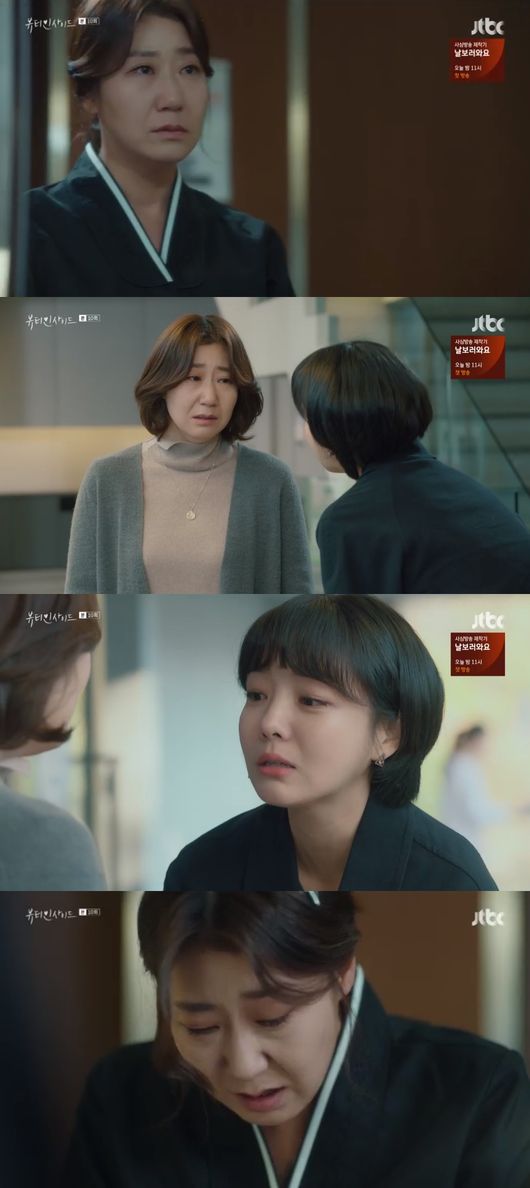 30일 오후 방송된 JTBC '뷰티인사이드'에서 한세계(서현진 분)이 엄마 한숙희(김희정 분)을 떠나보냈다. 슬퍼하는 세계의 곁을 서도재(이민기 분)이 지켰다.