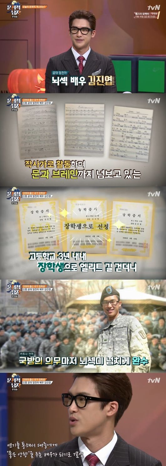 김진엽은 30일 방송된 tvN '문제적 남자'에는 문제적 게스트로 출연했다. 지난 9월 종영된 MBC 월화드라마 '사생결단 로맨스'에서 차재환 역을 맡아 출연하기도 했던 김진엽은 데뷔한 지 4년 정도된 유망주다.