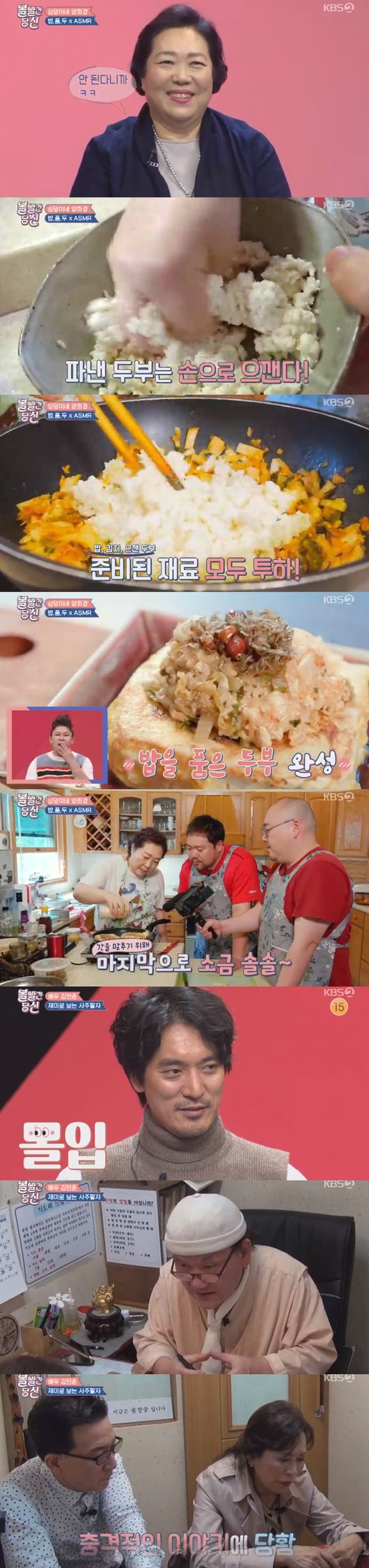 양희경네 가족. 양희경은 한 그릇으로 즐길 수 있는 '밥품두' 요리를 선보였다. 양희경은 "단백질 덩어리로 소화 잘되는 음식, 두부의 양분을 우리가 다 먹을 수 있다. 완벽한 한끼 식사"라고 설명했다.
