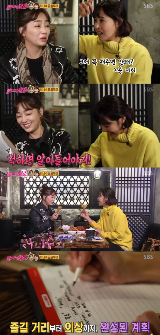 이날 이연수와 강경헌이 따로 만났다. 청춘들을 위한 강원도 춘천 여행을 짜기 위해서였기 때문. 두 사람은 즐길거리부터 의상까지 계획했다. 여행만큼 설레는 치맥까지 함께 먹으며 두 사람은 '허니수 달달한 꿀물투어'라고 외치며 기대감에 찼다.