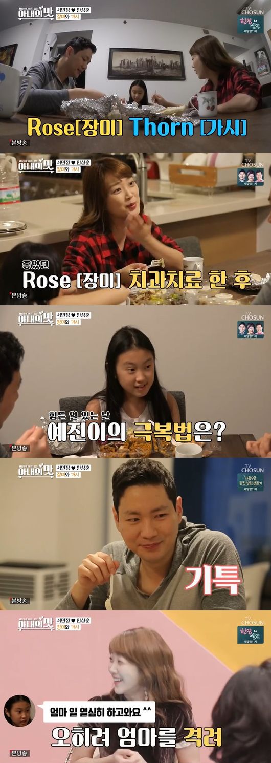계속해서 뉴욕 일상이 그려졌다. 가족들은 맨해튼 단골집으로 향했다. 가장 좋아하는 케밥을 사서 집에서 가족들이 모여 식사를 했다. 딸 예진은 母민정에게 병원에서 뭐가 좋았고 힘들었는지 물었다. 서민정은 "치과 치료는 힘들고 무서웠지만, 이후 너무 좋았다"고 했다. 반대로 서민정은 딸에게 힘든일 있는날 극복법을 물었다. 예진은 "힘든 일 있어도 세상은 완벽하지 않다고 생각, 대화를 해야한다"면서 11살임에도 영특한 모습을 보였다. 서민정과 안상훈은 딸이 대견하고 기특한 듯 흐뭇하게 바라봤다.