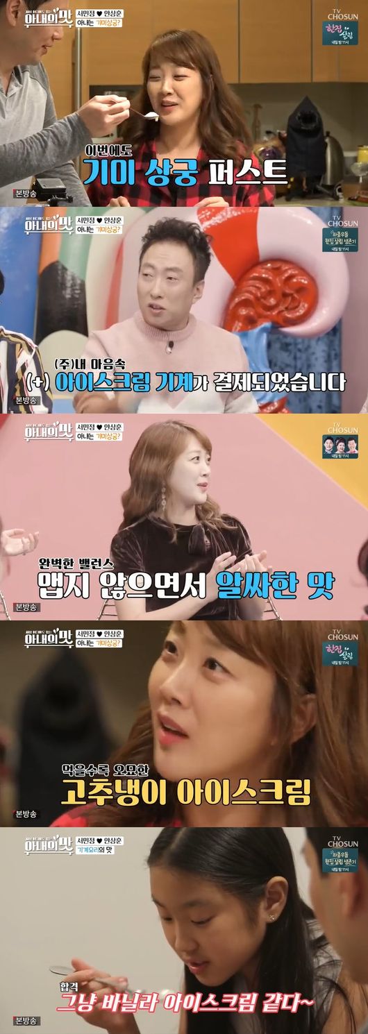 남편 안상훈은 드디어 커피를 완성, 어느새 아이스크림도 완성됐다. 비주얼은 합격이었다. 다시 재도전한 고추냉이 아이스크림을 완성, 서민정은 "고추냉이가 맵지 않고 맛있었다"며 마지막 맛을 인정했다. 먹을수록 오묘한 맛이라고. 화룡정점 체리까지 더해 세상 하나뿐인 아이스크림이 완성됐다.