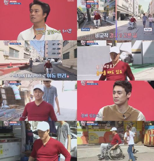 최대철은 휠체어를 타고 700m 거리의 미술학원에 가기 위해 움직였다. 하지만 턱들이 많았고 경사진 도로도 있었다.