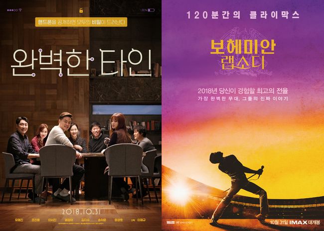 '창궐'이 흥행 방패라면 '완벽한 타인'과 '보헤미안 랩소디'는 흥행 창이다. '창궐'은 극장가 흥행 지키기에 나서고, 반대로 동시에 개봉한 '완벽한 타인'과 '보헤미안 랩소디'는 11월 극장가 승기 잡기에 나섰다.