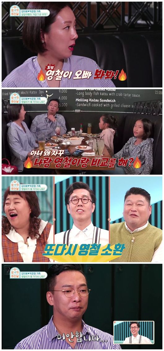 ‘외식하는 날’ 박준형 김지혜 부부가 또 다시 김영철을 언급했다. 급기야 박준형은 김영철에게 사과의 메시지를 보냈다.